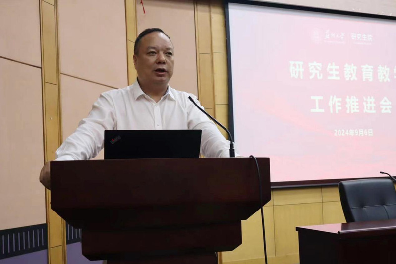 姚建林作指示讲话,他强调,要深刻认识学校第七次发展战略研讨会形成的系列共识及努力方向,凝心聚力探索研究生教育教学新形态,重塑人才培养全流程要素,加强拔尖创新人才自主培养能力。他对研究生教育教学工作提出了四点要求。一是切实提高研究生培养的责任感、使命感,把各项工作落到实处、抓出成效。二是正确认识研究生教育面临的挑战和困难,运用制度创新引导、文件落实执行来重塑人才培养全过程,形成追求卓越的文化氛围。三是加强学科、学位顶层设计,统筹布局学位点建设工作,强化前瞻动态调整,发挥优势打造特色学科。四是优化资源配置,充分优化配置方式、发挥资源调控作用,深入推进学术、专业学位研究生分类培养,推动研究生教育持续发展。