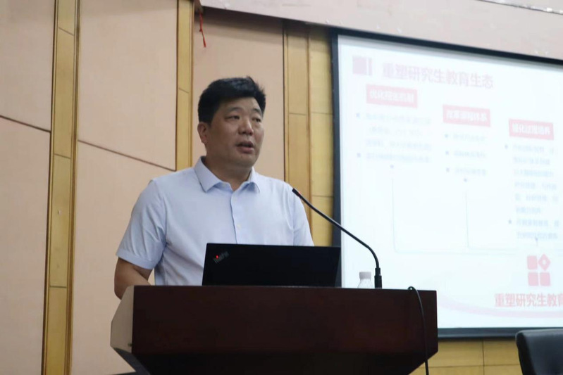 张进平传达了学校第七次发展战略研讨会精神,并作近期工作详细部署,推进落实学校发展战略研讨会明确的改革重任。他指出,要从招生机制、课程体系、过程培养、论文质量、学位申请条件等方面重塑研究生教育生态,并介绍了近期招生、培养、学位、江苏省卓越工程师学院相关工作安排。