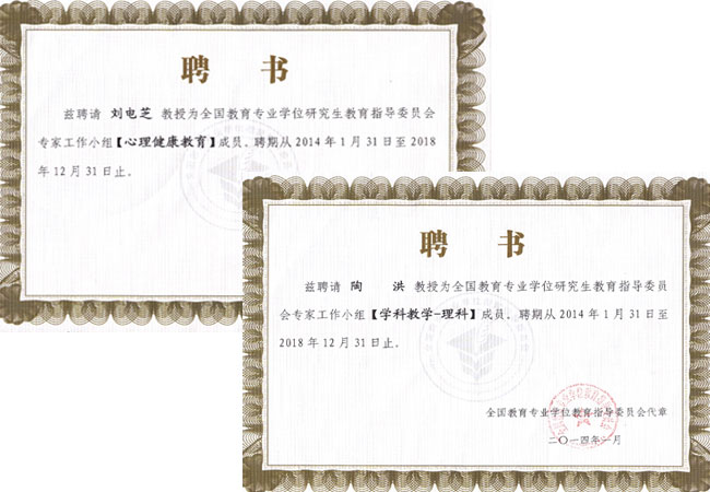 3月31日,根据《全国教育专业学位研究生教育指导委员会关于成立专家工作小组的通知》(教指委发【2014】01号),通过院校推荐、同行推荐与“教指委”推荐相结合产生,经“教指委”2014年第一次全体会议讨论通过,我校刘电芝、陶洪教授入选教育硕士专业学位研究生教育专家工作小组。