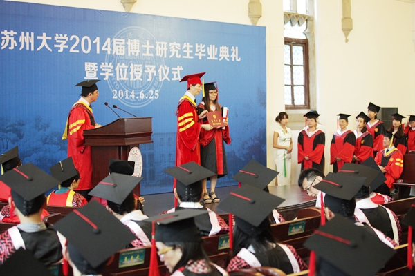 6月25日,我校2014届博士、硕士研究生毕业典礼暨学位授予仪式先后在本部钟楼小礼堂和存菊堂隆重举行。校党委书记王卓君,校长朱秀林,中国科学院院士李永舫,澳大利亚工程院院士、新西兰皇家科学院院士陈晓东,校领导袁银男、路建美、田晓明、高祖林、熊思东、蒋星红,校长助理王家宏和校学位评定委员会部分委员出席了毕业典礼。学校各职能部门、学院(部)领导和导师代表以及全体毕业生和部分毕业生家长代表参加了典礼。典礼由副校长熊思东主持。