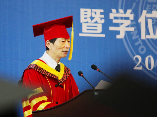 6月25日上午,在2014届博士研究生毕业典礼暨学位授予仪式上,校学位委评定委员会主席、校长朱秀林勉励博士毕业生“养浩然正气,存完人之心”、“秉学术之道,存学人之心”、“担民族大任,存士子之心”,以博学笃行、止于至善的学术态度,读懂社会无字书,学做有用社会人。