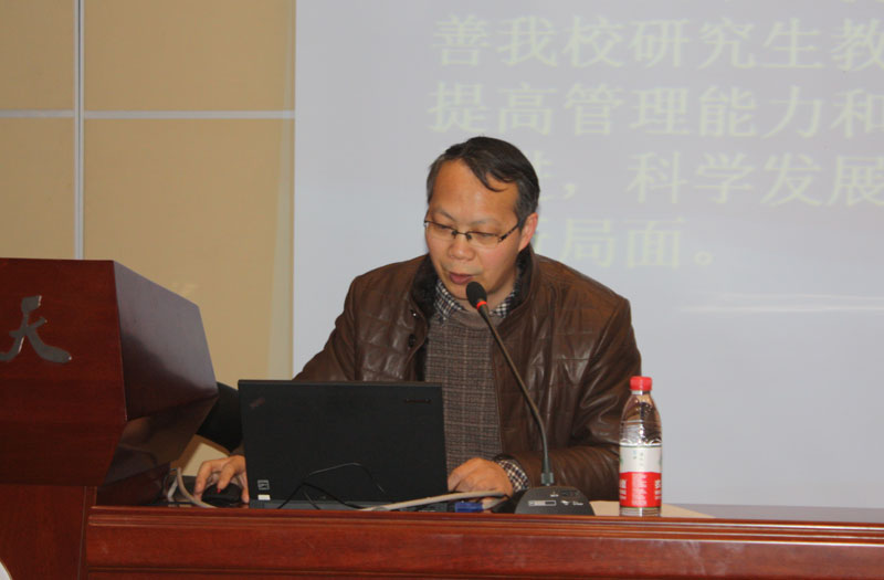郎建平围绕2014年研究生院工作指导思想,全面回顾和总结了我校2014年研究生教育和学科建设的基本工作情况和取得的成绩,在此基础上,他结合2015年工作思路,提出下一步将要开展的主要工作及措施。最后,郎建平代表研究生院向所有关心和支持研究生院工作的领导