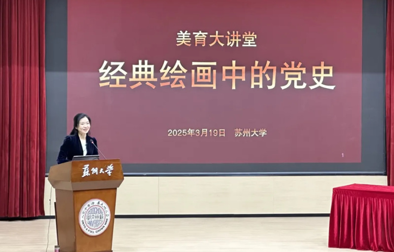 3月19日,苏州大学研究生院联合艺术教育中心邀请江苏省高校网络教育名师、江苏省巾帼党课讲师联盟成员、江苏省警官学院高筱媛老师为研究生同学们带来了一场题为《经典绘画中的党史》的美育讲座。这门讲座课程入选了江苏省高校美育大讲堂优课。高老师从经典画作鉴赏的角度,带领同学们穿越历史长河,重温了中国共产党的光辉奋斗历程,令在场的同学们经历了一场思想与艺术的双重熏陶与洗礼。