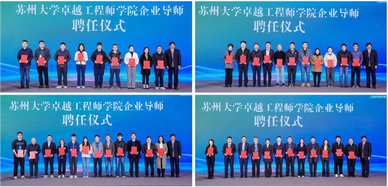 随后,姚建林、刘江涛、陈淼、张进平共同为苏州大学卓越工程师学院揭牌。姚建林为63家签约理事单位授牌。张进平为94位企业导师颁发聘书。