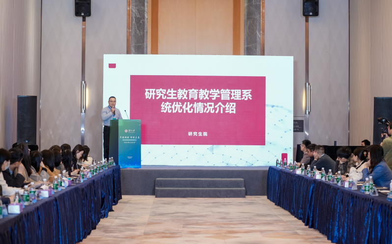 会上,研究生院质量监督办公室主任杨牧汇报研究生教育教学管理系统优化情况及培养手册优化说明。他详细介绍了各版块在功能升级、操作简化、数据整合方面的具体改进,并从“修订必要性”“核心内容”“使用方法”三方面,清晰解读手册优化要点,为基层培养单位工作提供指导。