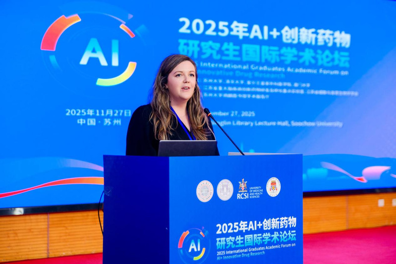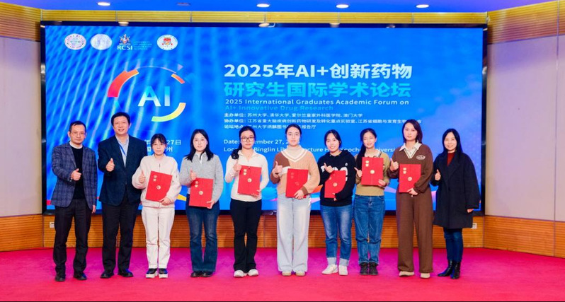 2025 年 11 月 27 日,AI+创新药物研究生国际学术论坛在苏州大学炳麟图书馆学术报告厅成功落下帷幕。本次论坛由苏州大学、清华大学、爱尔兰皇家外科医学院、澳门大学主办,江苏省重大脑疾病创新药物研发及转化重点实验室、江苏省细胞与发育生物学学会协办。