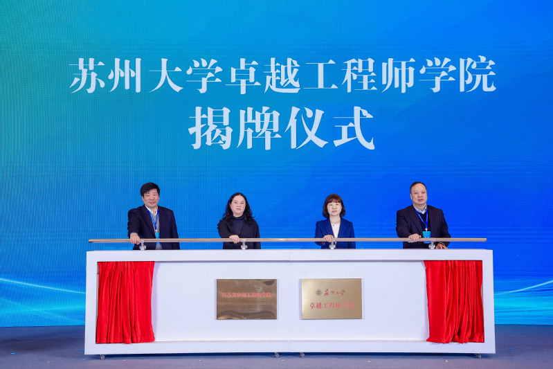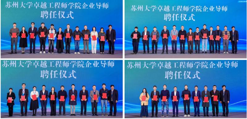随后,姚建林、刘江涛、陈淼、张进平共同为苏州大学卓越工程师学院揭牌。姚建林为63家签约理事单位授牌。张进平为94位企业导师颁发聘书。
