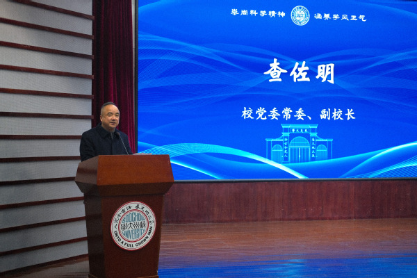 查佐明在讲话中表示,优良的科学道德和学风建设是做好科技工作的“生命线”,是建设创新型国家和世界科技强国的根基。他寄语全校研究生,要志存高远,追及榜样,做科创报国的接力者,把自己的学术追求融入强国建设、民族复兴伟大事业的接续奋斗之中;要崇德律己,求真务实,做科学道德的坚守者,把做人、做事、做学问统一起来,以行动维护学术诚信;要尚学笃行,勇攀高峰,做优良学风的弘扬者,以严谨治学的姿态站在“巨人的肩膀上”不断追求卓越。他希望博士生宣讲团成员要“既做研究员,也做宣讲员”,做到“坐下来能写,站起来能说,走出去能干”,要善于用通俗易懂的方式与同学们交心,起到“讲起来有声有色、听起来有滋有味、传起来有情有理”的效果。