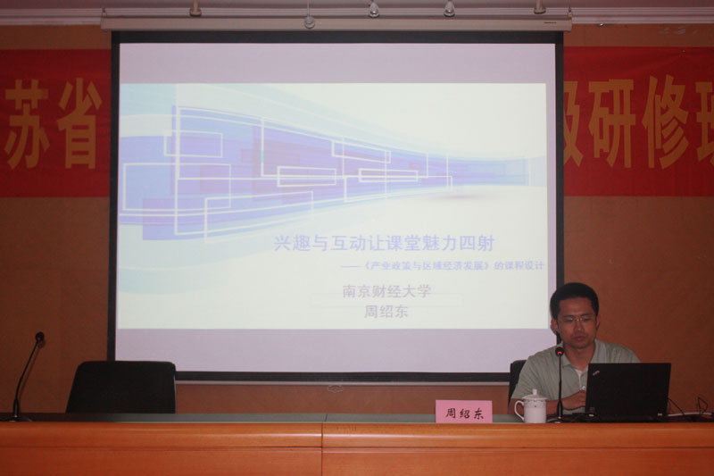 来自南京财经大学的周绍东作了《兴趣与互动让课堂魅力四射——<产业政策与区域经济发展>的课程设计》的示范教学,此门课程授课对象为区域经济学专业一年级硕士生,课程性质为专业课、必修课,教材来源为自编讲义、参考材料和产业规划。周绍东从课程设计思路、课程设计主要创新、换位教学中的关键控制环节及课程要求做了详细的讲解。方世南教授在点评过程中对周绍东进行了高度赞扬,认为周绍东对课程内容烂熟于胸,理论与实践结合,把导师与研究生作为共同体:教学共同体、进步共同体、发展共同体、共享的共同体,把课程主题思想阐述得淋漓尽致。