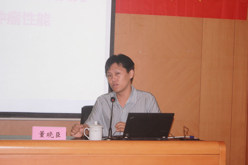 来自南京工业大学的董晓臣作了《课题研究经验分享,近红外光敏剂的设计、合成及其光动力协同治疗肿瘤性能》的示范教学,讲解了外科手术、辐射治疗、药物治疗、光动力治疗等肿瘤治疗方式,并详细阐述光动力治疗的优点。通过文献查找、验证等方式让学生对课题具有全面的了解。朗建平教授在随后的点评中认为该课题抓住了所在领域的研究热点,符合国际潮流,很清楚地告诉了我们要解决什么问题,学生也很清楚要解决什么问题,且通过课题组组会、文献阅读来提升学生能力,希望今后我校能与其在科研上加强交流与合作。