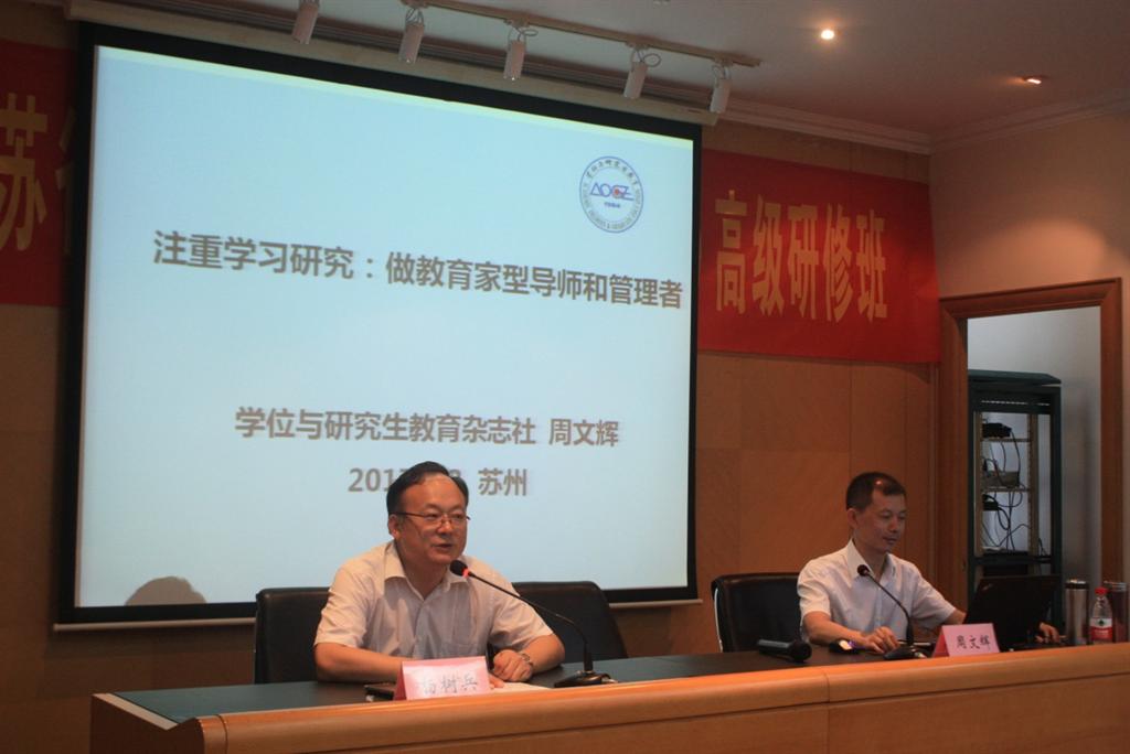 最后,周文辉根据近年来许多导师发表的文章,并结合自己的工作体会,就研究生导师有哪些职责、怎样培养科学精神、怎样培养科学研究能力、怎样指导学位论文、怎样建立良好的师生关系、怎样做一个好导师等六个方面做了详细报告。