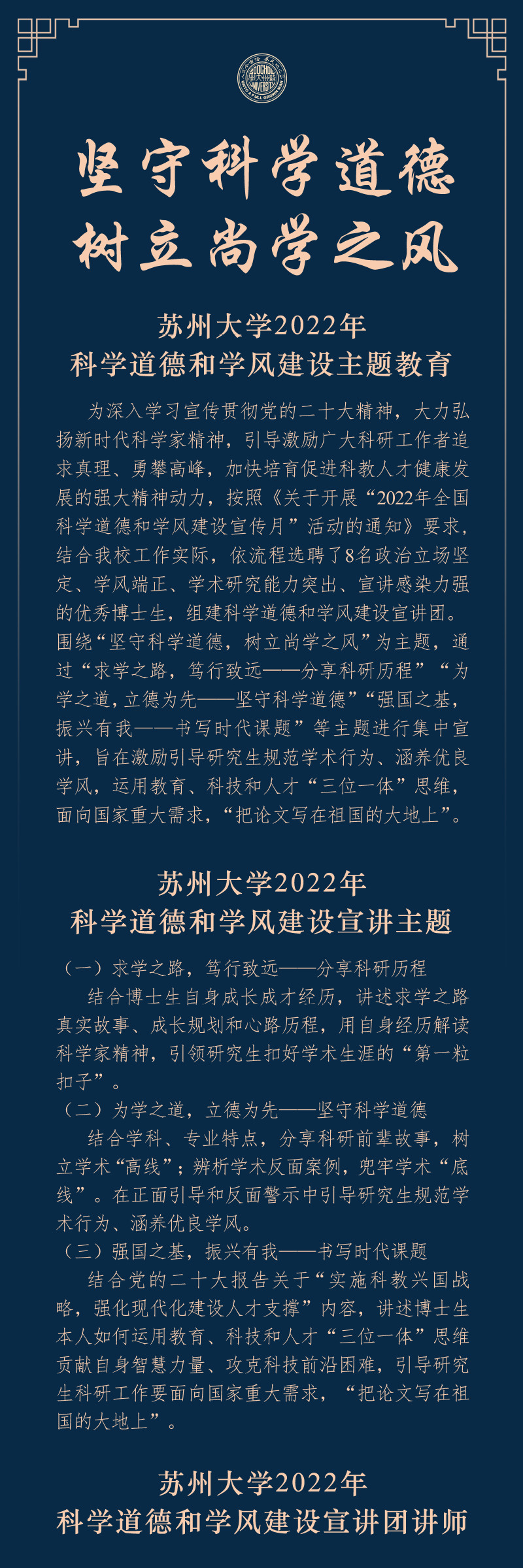 “坚守科学道德,树立尚学之风”——苏州大学2022年科学道德和学风建设主题教育活动